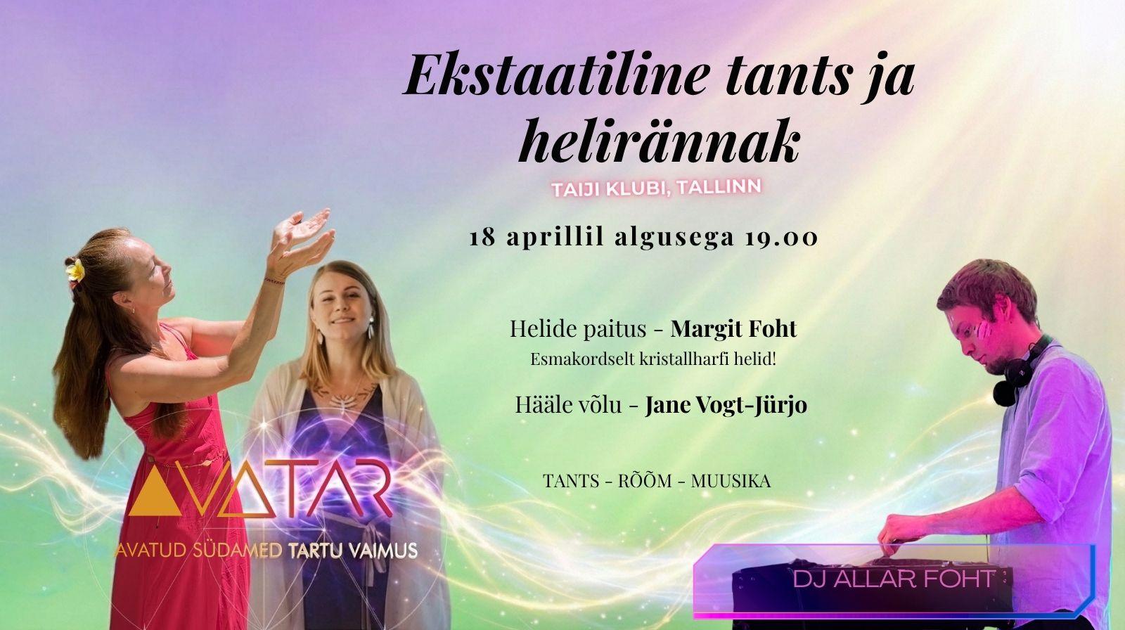 AvaTAR pidusid korraldab Väekate Sündmuste Agentuur, Ekstaatilise tantsu Tartusse tooja, väekate sündmuste korraldaja 2017 aastast. Ekstaatiline tants on vabas vormis liikumisrännak, muusika hõlmab erinevaid žanre, temposid, emotsioone ja intensiivsust. Tantsime vabalt alistudes rütmile. Muusika ja hoitud ruum toovad meid kohale hetke, nautima ja väljendama liikumist iga oma keharakuga.Tantsides vabalt, ennast unustades, saame kogeda vabaduse tunnet, rõõmu, ekstaasi, vajamata mõnuaineid.
